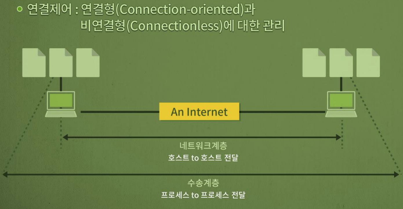 -특정 프로세스에 대한 주소지정, 메시지를 세그먼트단위로 분할 및 조립, 연결제어, 종단간 흐름제어, 종단간 에러제어 수행