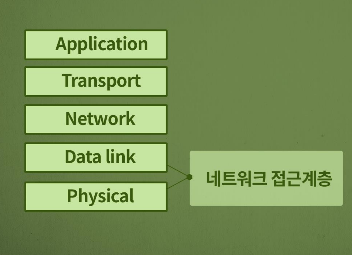 - 물리 + 데이터 링크 계층을 합쳐서 네트워크 접근 계층이라고도 함