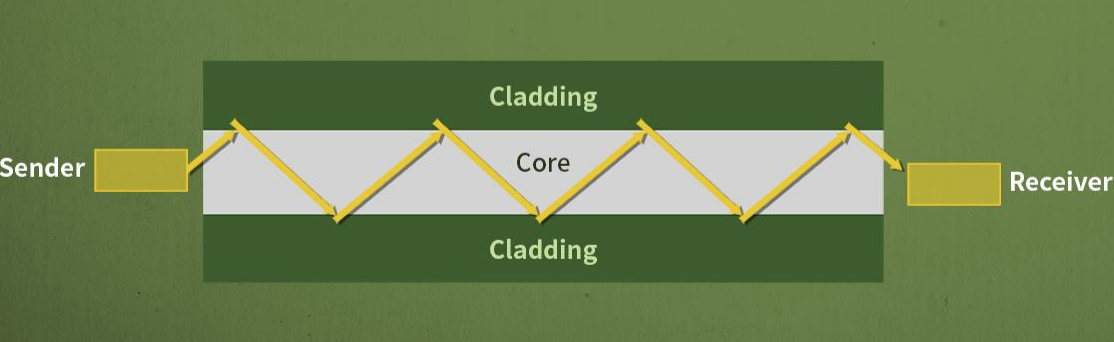 -빛 신호가 광 섬유 중앙 부분인 코어(core)를 따라 클래딩(cladding)에 반사되며 전달