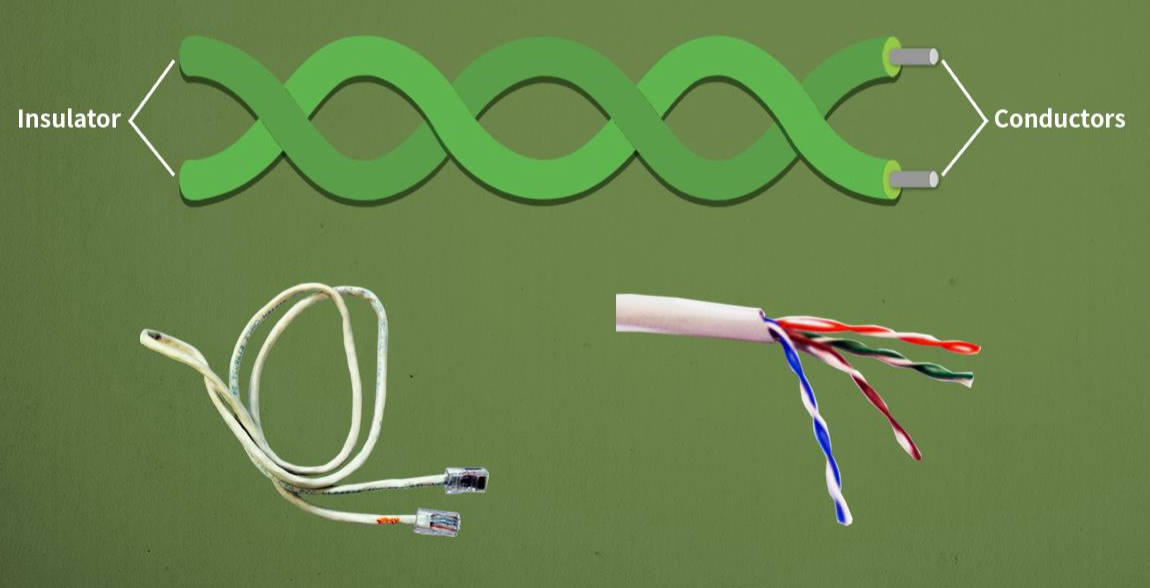 :TP 케이블은 두 개의 도체가 절연체로 감싸고 꼬인 것을 의미